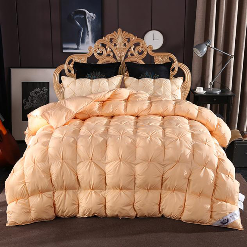 Down Comforter outer is made of 100-percent cotton fabric,Super plush and Soft warm for all year around use.Down comforters are finished with double needle stitched for strength and longevity you can sleep under for years to come.