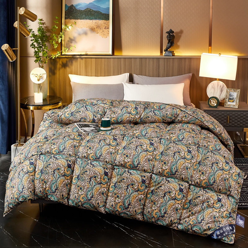 Down Comforter outer is made of 100-percent cotton fabric,Super plush and Soft warm for all year around use.Down comforters are finished with double needle stitched for strength and longevity you can sleep under for years to come.