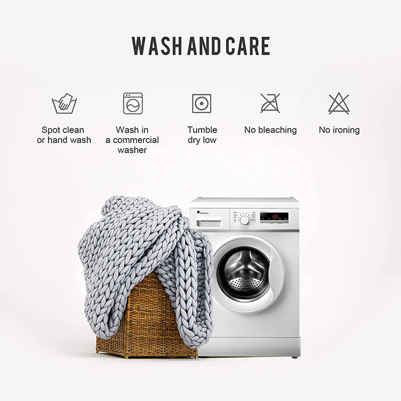 【Cleaning & Caring】 Our blankets are machine washable, just put the blanket inside a laundry net bag to prevent entanglement and damage. Proper maintenance can extend the life of the blanket.So we suggest more hand washing or spot washing, less machine washing.Do not iron.