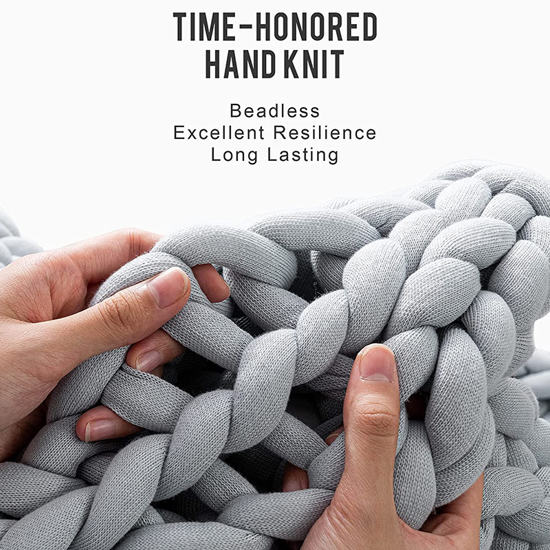 【 New Version Unique Beadless Design】 A unique new version beadless design– it is hand knitted evenly so the weight is distributed evenly. And the weight comes from the chunky yarn which filled with hollow fiber so it is sturdy and long lasting for years.This is intelligent discovery to completely avoid leaking out beads and Uneven weight from old glass bead weighted blanket.